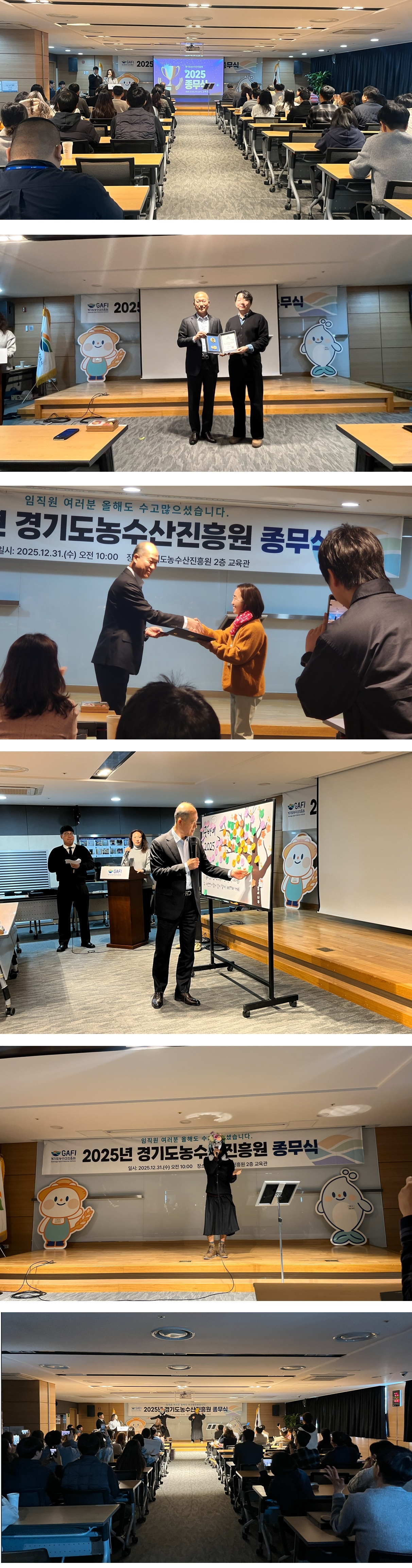 메인 컨텐츠 화면 지속가능한 미래를 만드는 농수산 플랫폼 기관 홍보소식 언론보도보도자료진흥원 소식영상자료월간동향 홍보소식 진흥원 소식 진흥원 소식 목록 화면 제목 (2025.12.31.)2025년 경기도농수산진흥원 종무식 글쓴이 경기도농수산진흥원 작성일 2025-12-31 첨부파일 <2025년 경기도농수산진흥원 종무식> ❍ 일 시: 2025. 12. 31.(수) 10:00~11:30 ❍ 장 소: 진흥원 교육관 ❍ 참 석 자: 임직원 ❍ 주요내용: 인사말씀, 표창장 및 상장 수여, 직원 소통의 시간, 장기자랑 등 목록
