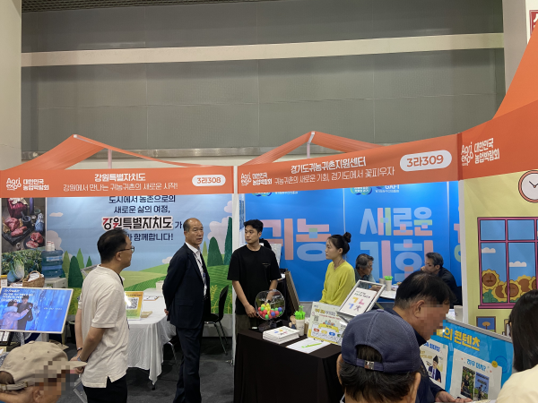 □ 2025 대한민국 농업박람회 ○ 일 시: 2025. 9. 25.(목) ~ 9. 28.(일) ○ 주 최: 농림축산식품부, 농림수산식품교육문화정보원 ○ 장 소: 서울 양재동 aT센터 ○ 주요내용 - 귀농·귀촌 정책 및 정착 지원사업 홍보 - 맞춤형 1:1 상담 부스 운영 (농업창업 및 주택구입자금, 청년후계농 영농정착지원사업 등) - 경기도 특화사업 소개 (귀농귀촌 준비·탐색 교육, 행복멘토멘티, 베이비부머 농촌 한 달 체험 등) - 도시민 귀농·귀촌 관심 제고 및 안정적 정착 지원 효과 기대 |