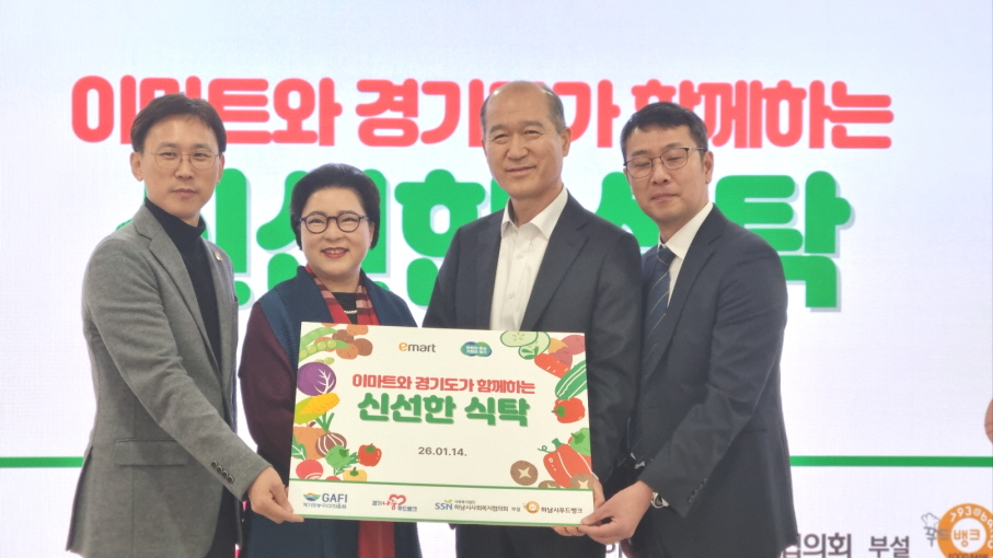 메인 컨텐츠 화면 지속가능한 미래를 만드는 농수산 플랫폼 기관 홍보소식 언론보도보도자료진흥원 소식영상자료 홍보소식 진흥원 소식 진흥원 소식 목록 화면 제목 (2026.1.14) 취약계층 "친환경농산물 꾸러미" 전달 글쓴이 경기도농수산진흥원 작성일 2026-01-21 첨부파일 ○ 일 시: 2026. 1. 14.(수) 15:00 ○ 장 소: 하남시 푸드뱅크 ○ 참석기관: 경기도사회복지협의회, 이마트 ○ 주요내용 - 사회공헌형 ‘신선한 식탁’사업 - 친환경농산물 꾸러미를 도내 국민기초생활수급자와 수급권 탈락자 3,000가정에 전달 - 사업 재원은 이마트가 매년 2억원씩 3년 동안 모두 6억원 기부 목록