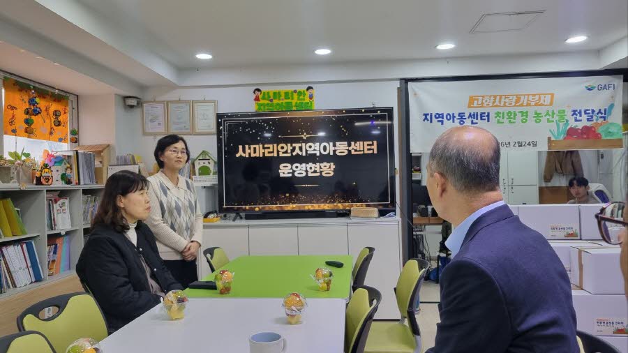 메인 컨텐츠 화면 지속가능한 미래를 만드는 농수산 플랫폼 기관 홍보소식 언론보도보도자료진흥원 소식영상자료월간동향 홍보소식 진흥원 소식 진흥원 소식 목록 화면 제목 (2026.2.24)"고향사랑기부제" 지역아동센터 친환경농산물 전달식 글쓴이 경기도농수산진흥원 작성일 2026-02-27 첨부파일 ○ 일 시: 2026.2.24.(화)○ 장 소: 여주지역아동센터○ 주요내용 - 고향사랑기부를 통해 취약계층 아동의 영양 불균형 해소 및 친환경 농가 판로 확보 - 겨울방학과 여름방학 총 2차례에 걸쳐 추진 - 여주 등 6개 시군 지역아동센터를 통해 1,424가정에 전달 목록