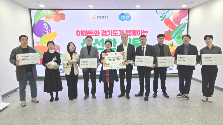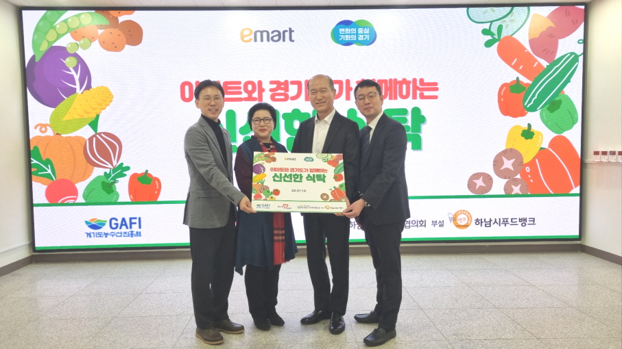 메인 컨텐츠 화면 지속가능한 미래를 만드는 농수산 플랫폼 기관 홍보소식 언론보도보도자료진흥원 소식영상자료 홍보소식 진흥원 소식 진흥원 소식 목록 화면 제목 (2026.1.14) 취약계층 "친환경농산물 꾸러미" 전달 글쓴이 경기도농수산진흥원 작성일 2026-01-21 첨부파일 ○ 일 시: 2026. 1. 14.(수) 15:00 ○ 장 소: 하남시 푸드뱅크 ○ 참석기관: 경기도사회복지협의회, 이마트 ○ 주요내용 - 사회공헌형 ‘신선한 식탁’사업 - 친환경농산물 꾸러미를 도내 국민기초생활수급자와 수급권 탈락자 3,000가정에 전달 - 사업 재원은 이마트가 매년 2억원씩 3년 동안 모두 6억원 기부 목록