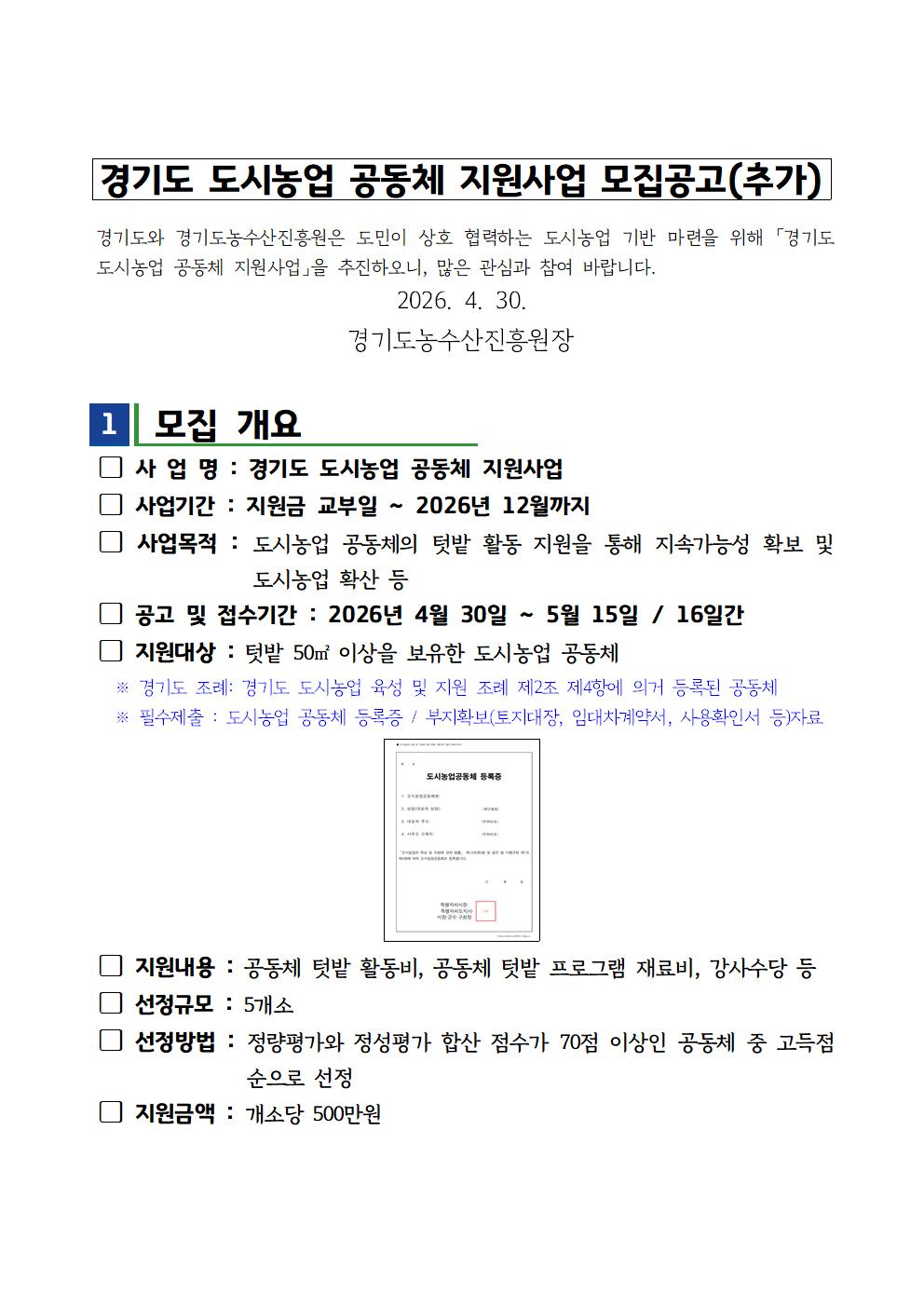| 제목 | 경기도 도시농업 공동체 지원 사업 대상 모집 추가 공고 | ||