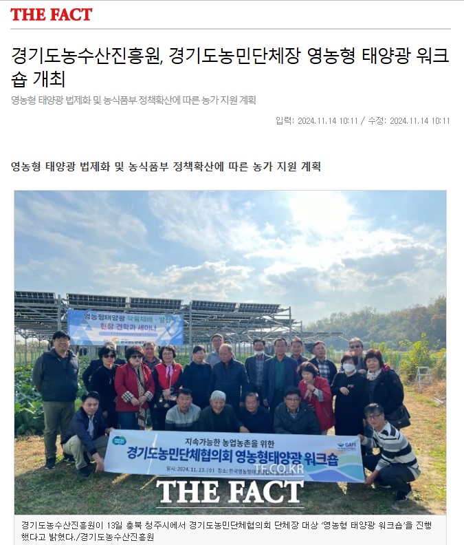 | 제목 | 경기도농수산진흥원, 경기도농민단체장 영농형 태양광 워크숍 진행 | ||